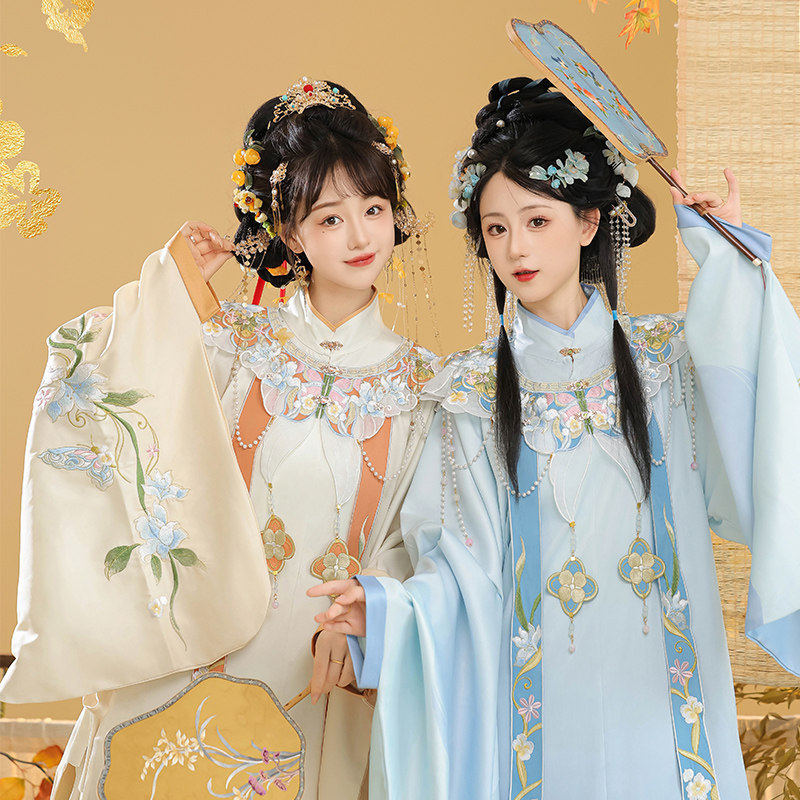 原创明制汉服女 【庐州月】明制立领长衫重工刺绣云肩马面裙秋款