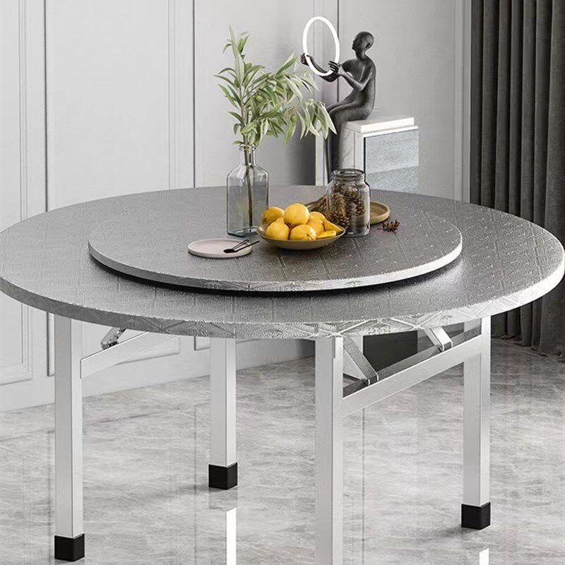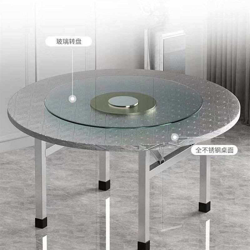 304不锈钢圆桌 折叠q餐桌饭店食堂大排档聚会商家用加厚桌面带转