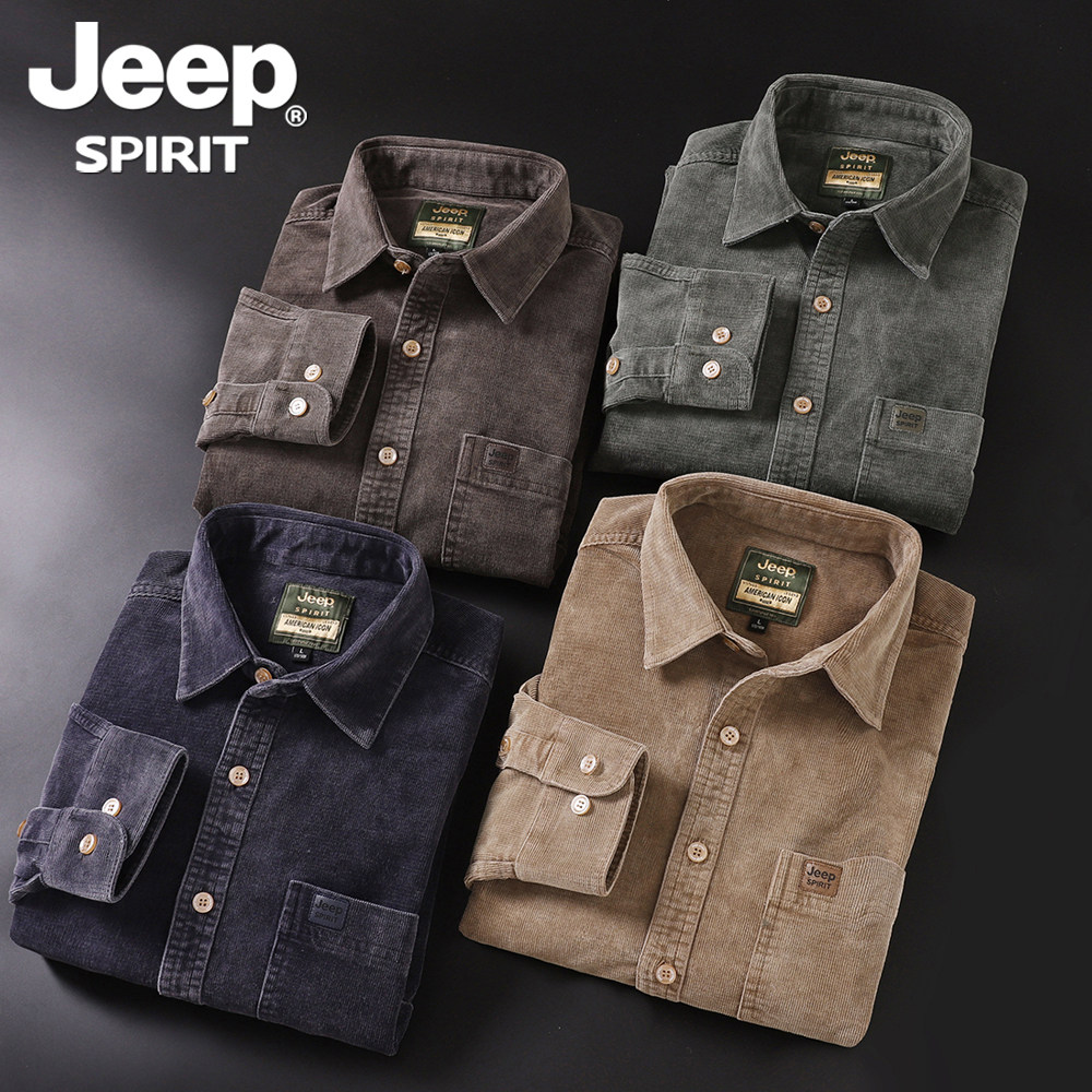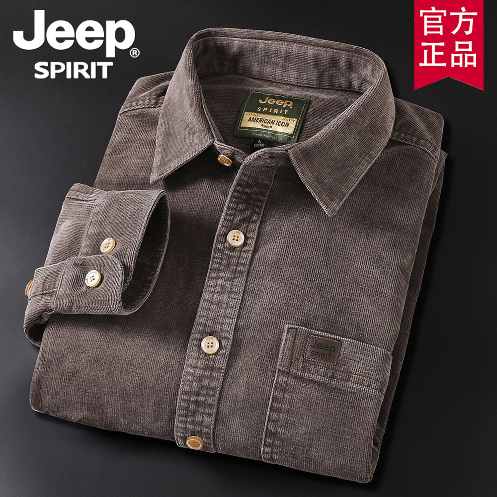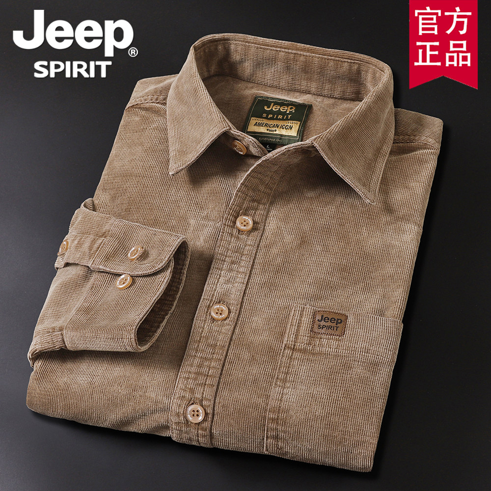 jeep官方正品春秋新款灯芯绒长袖衬衫男士大码宽松潮美式休闲衬衣
