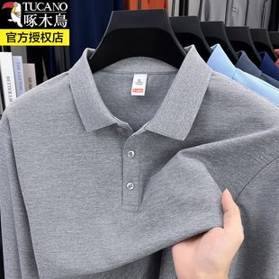 啄木鸟男士长袖t恤2025春秋季中年商务休闲纯色百搭打底Polo衫男