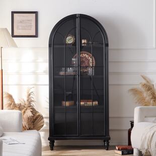 法式多层靠墙拱形玻璃门酒柜书柜复古做旧实木展示柜子客厅储物柜