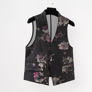 2026春秋新中式国风重工刺绣立领马甲女新款宽松开叉盘扣无袖坎肩