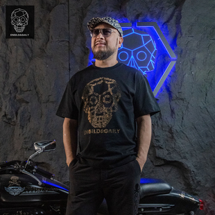 金刚铁甲骷髅头原创设计个性潮牌美式复古烫钻宽松休闲短袖T恤男