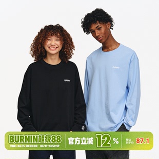 BURNIN*横排logo胸口长袖T恤春夏新款休闲宽松基础情侣上衣潮流