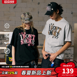 【豹纹星星】DONSMOKE环保贴布绣宽松落肩撞色T恤DSM防晒速干短袖