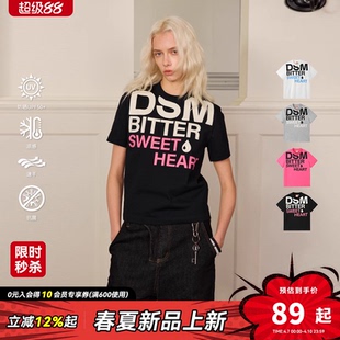 【苦命甜心】DONSMOKE字母排版印花速干紧身短袖DSM正肩微弹短款T