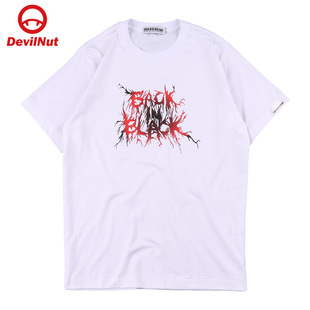 DEVIL NUT潮牌 春夏男女中性夏季情侣bf宽松圆领BIB短袖T恤 SSX