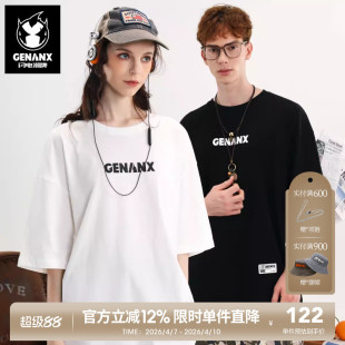 GENANX闪电潮牌重磅t恤夏季新款简约风字母logo印花情侣多彩T恤